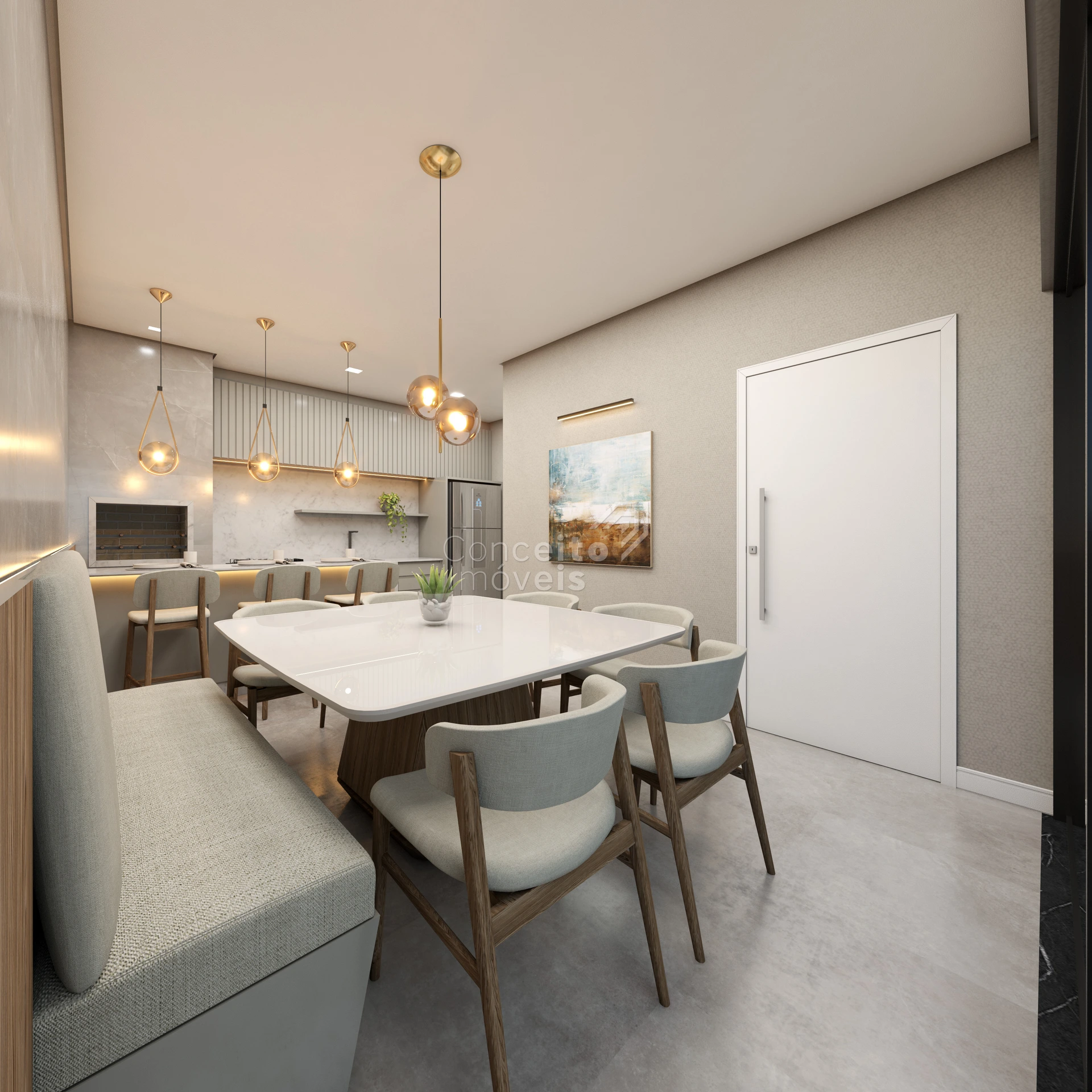 Configuração: 3 quartos (1 suíte), 2 banheiros, living integrado com sala de estar e jantar.