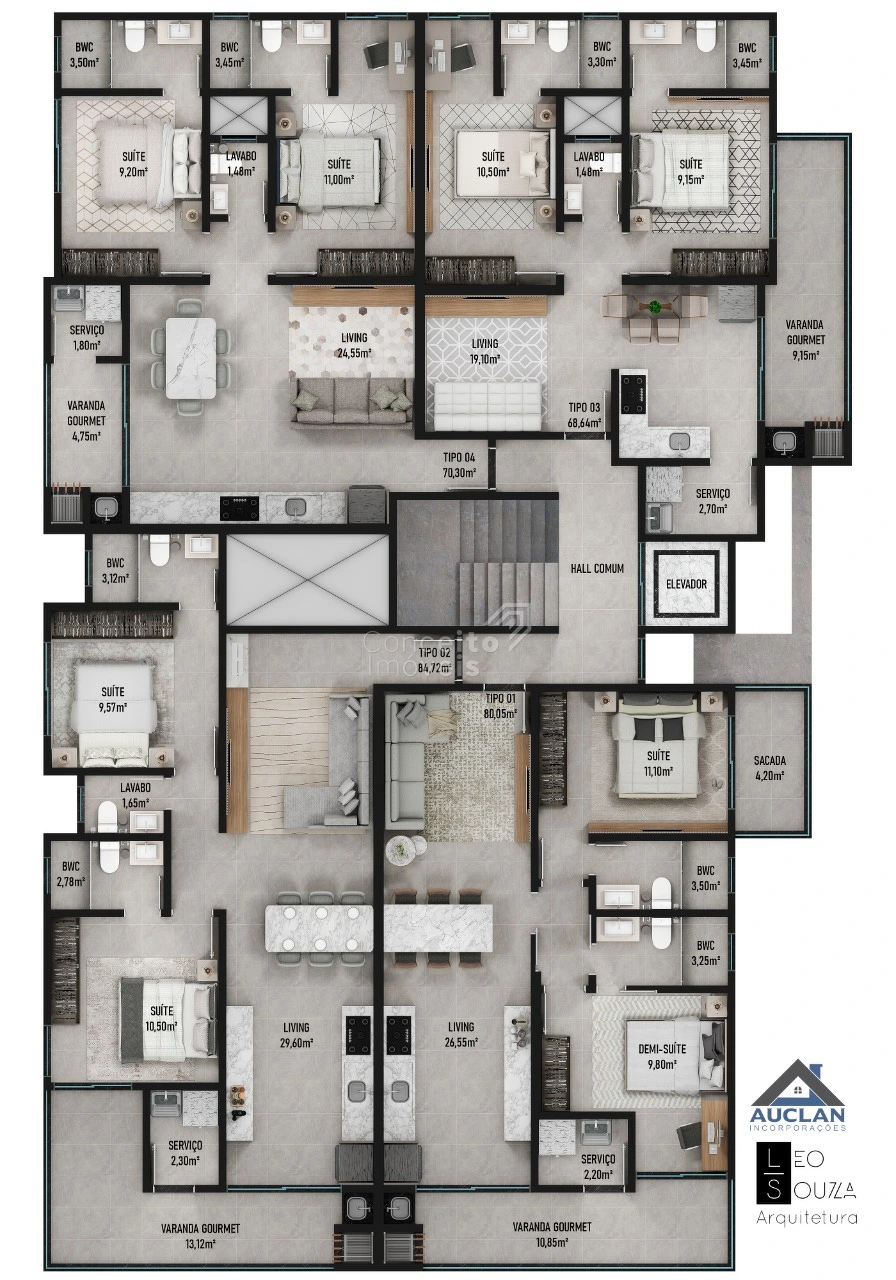 Áreas privativas: de ≈ 67 m² até ~84 m² — opções versáteis para diferentes perfis.