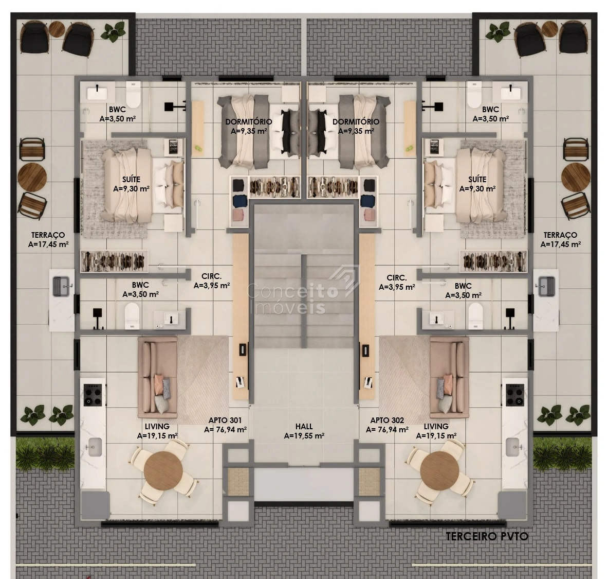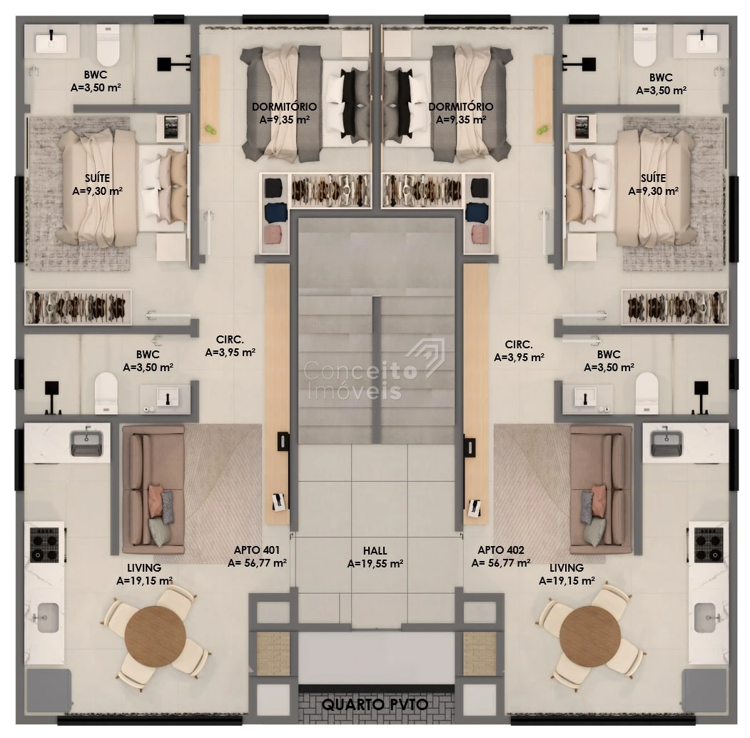Metragem reduzida: apartamentos de ~56 a ~77 m² são ideais para pequenos núcleos, mas podem não atender a quem busca espaços amplos ou famílias maiores.