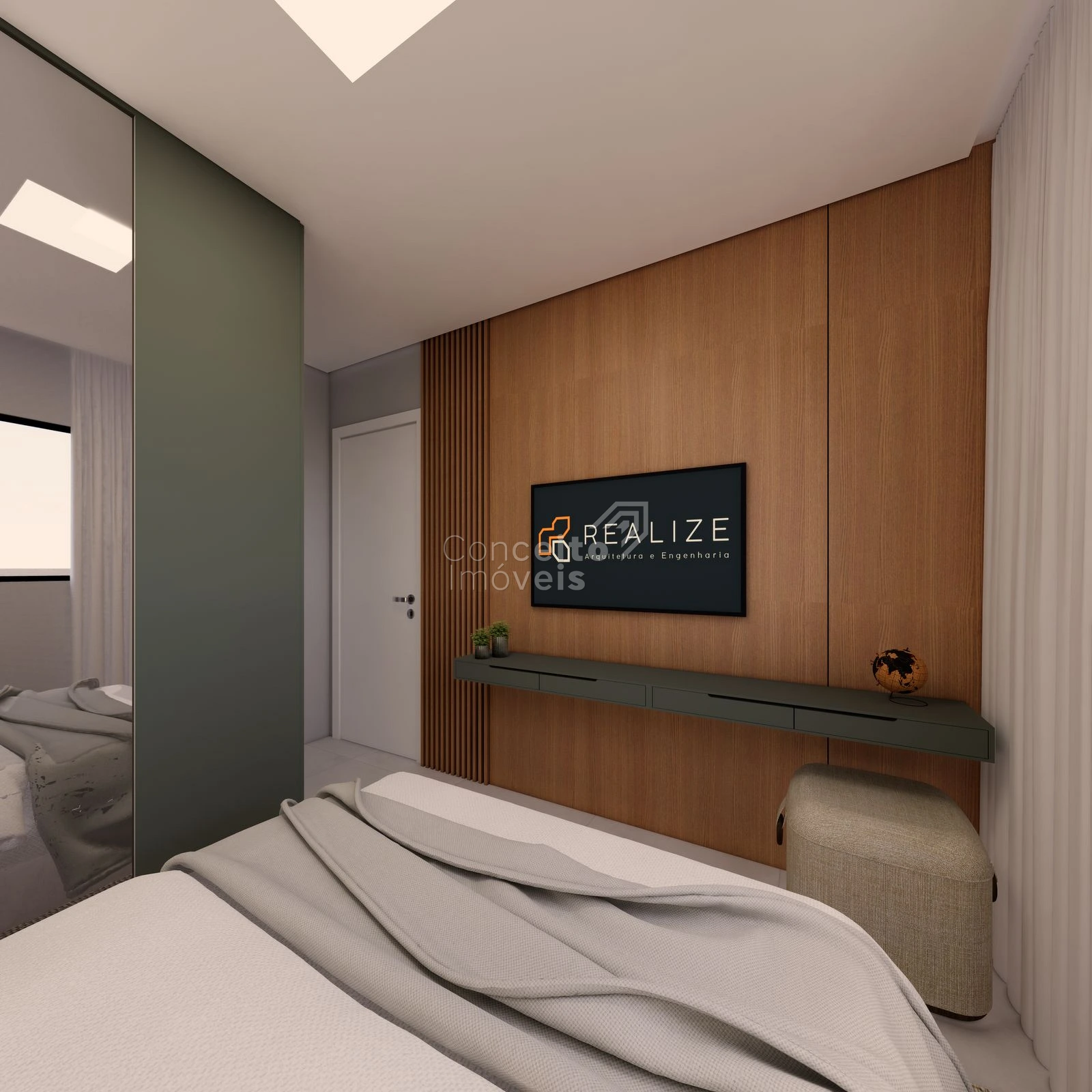 ✔️ Acabamento com porcelanato e detalhes em gesso