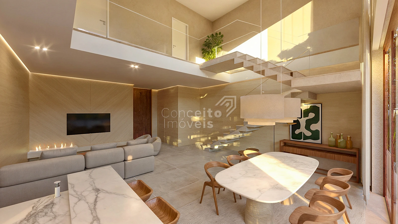 🛋️ Living integrado com estar, jantar e cozinha