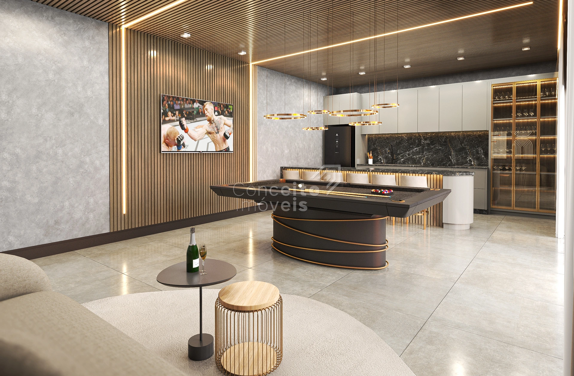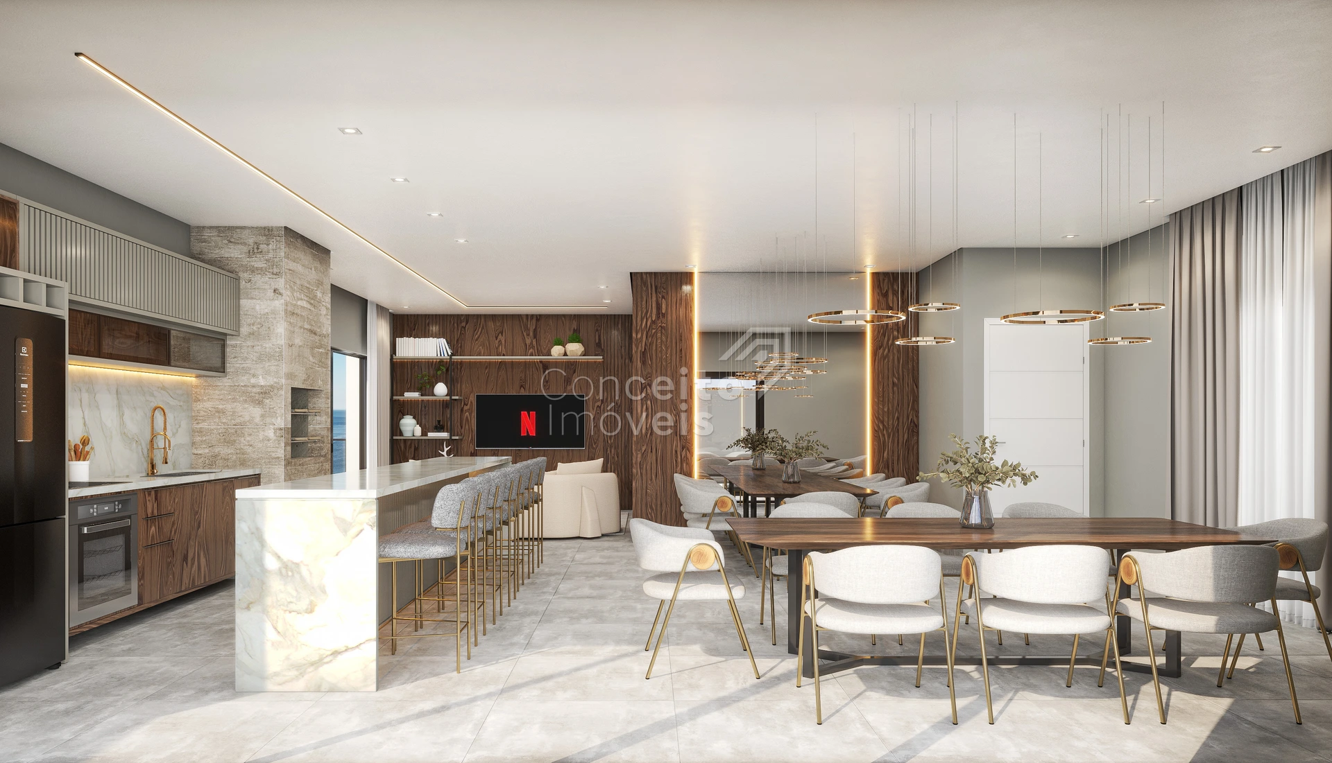 🥂 Amplo living integrado com pé-direito diferenciado