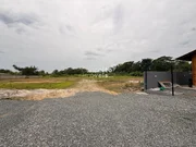 O terreno ainda não possui escritura individual, pois está em processo de regularização fundiária, iniciado em 2019. Atualmente, existe matrícula da área maior em nome da proprietária.