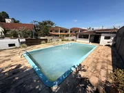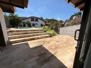 A piscina, envolvida por um deck todo em pedra, cria um ambiente elegante e funcional, ideal para aproveitar os dias de sol com privacidade e baixa manutenção.