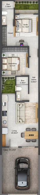 Ambientes: 2 quartos – sendo 1 suíte – living integrado com cozinha gourmet, irradiando amplitude e luminosidade natural. 🌅