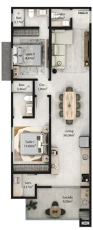 Os apartamentos apresentam uma planta inteligente, com ambientes bem distribuídos e integrados, proporcionando fluidez, amplitude e excelente aproveitamento dos espaços.